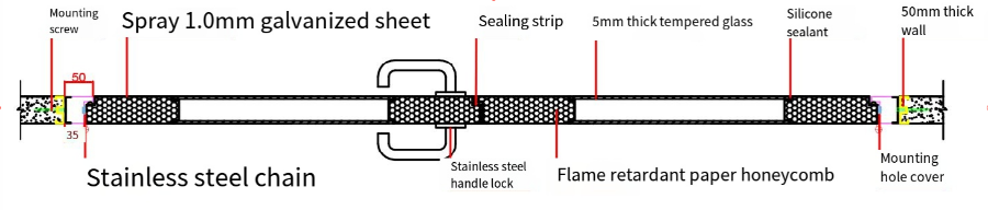 Isi: sarang lebah kertas tahan api setebal 48mm